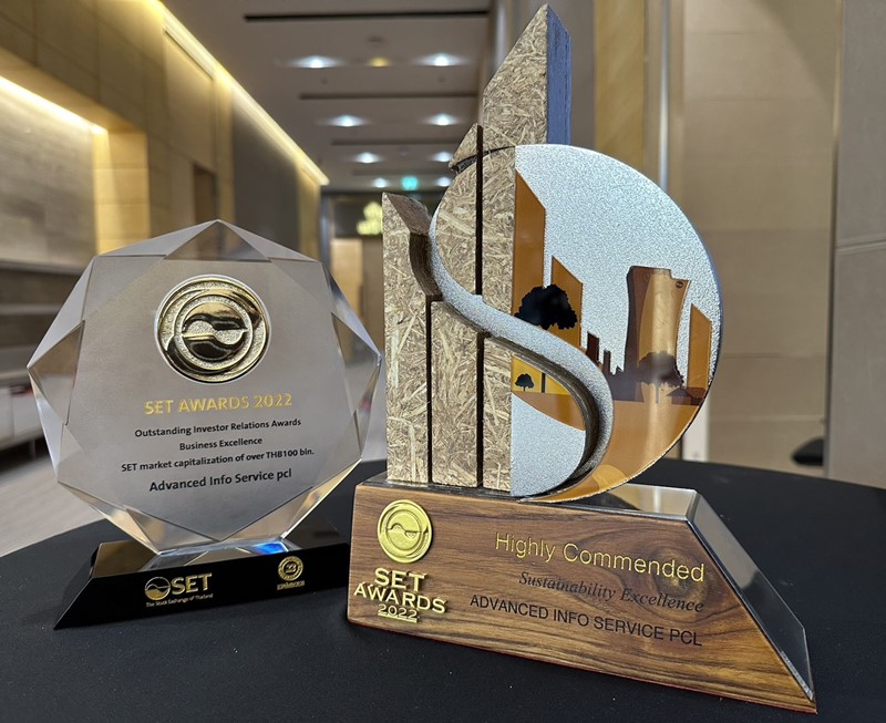 AIS คว้า 2 รางวัลใหญ่จากเวที SET AWARDS 2022 ที่จัดโดยตลาดหลักทรัพย์แห่งประเทศไทยร่วมกับวารสารการเงินธนาคาร เพื่อเป็นการประกาศเกียรติคุณบริษัทจดทะเบียน บริษัทหลักทรัพย์ บริษัทหลักทรัพย์จัดการกองทุน และบริษัทที่ปรึกษาทางการเงิน ที่มีความยอดเยี่ยมและดีเด่นในด้านต่างๆ จากผลการดำเนินงานในปีที่ผ่านมา สำหรับปีนี้ AIS ยังคงทำผลงานได้อย่างโดดเด่น กวาดมาได้ถึง 2 รางวัลใหญ่ ได้แก่ รางวัล Business Excellence สาขา Outstanding Investor Relations Awards ซึ่งเป็นการได้รับรางวัลต่อเนื่องเป็นปีที่ 3 และรางวัล Highly Commended Sustainability Awards ซึ่งได้รับการจัดอันดับในระดับที่สูงขึ้นจากปีที่ผ่านมาในกลุ่มรางวัล Sustainable Excellence ที่สะท้อนให้เห็นถึงความมุ่งมั่นในการดำเนินธุรกิจอย่างโปร่งใส ตามหลักบรรษัทภิบาลเพื่อสร้างการเติบโตร่วมกันอย่างยั่งยืนของเศรษฐกิจ สังคม และสิ่งแวดล้อม พร้อมทั้งคำนึงถึงผู้มีส่วนได้ส่วนเสียทุกกลุ่มอย่างรอบด้าน