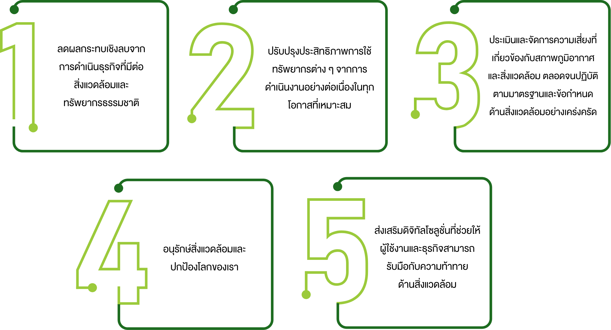 เอไอเอสได้กำหนดนโยบายด้านสิ่งแวดล้อมเพื่อเป็นแนวทางในการดำเนินงานตลอดห่วงโซ่คุณค่าทางธรุกิจ โดยมีวัตถุประสงค์ดังนี้