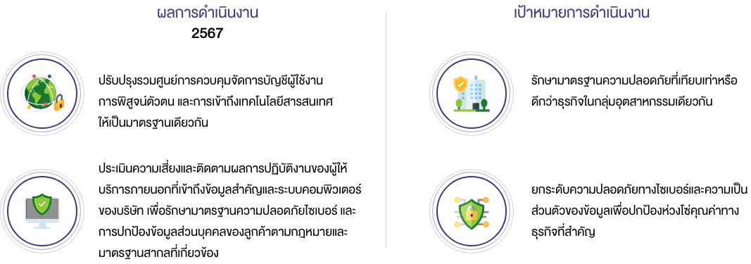สามารถอ่านรายละเอียดเพิ่มเติมรวมถึงโครงการอื่น ๆ ได้ที่หัวข้อ การปกป้องระบบสารสนเทศและคุ้มครองข้อมูลส่วนบุคคลของลูกค้า ในรายงานการพัฒนาธุรกิจอย่างยั่งยืนประจำปี 2567