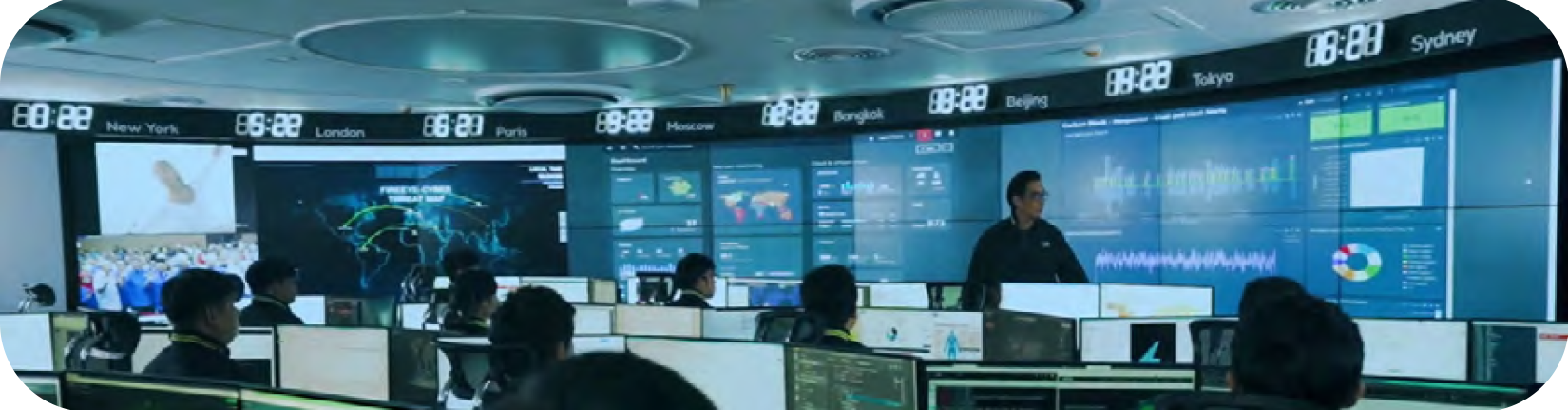 เอไอเอสมีศูนย์ปฏิบัติการรับมือและเฝ้าระวังภัยคุกคามทางด้านไซเบอร์ 24 x 7 (Cyber Security Operation Center: CSOC) เพื่อการเฝ้าระวังภัยและตอบสนองต่อภัยคุกคามทางไซเบอร์ที่อาจเกิดขึ้นในองค์กร รวมถึงล็อคการใช้งานจากอุปกรณ์ต่าง ๆ ผ่านระบบแจ้งเตือนแบบเรียลไทม์ร่วมกับการวิเคราะห์ข้อมูลเชิงพฤติกรรม (User Entity Behavior Analysis: UEBA) เพื่อเพิ่มขีดความสามารถในการตรวจจับเหตุุผิดปกติและประเมินภัยคุกคามไซเบอร์ได้อย่างทันท่วงที