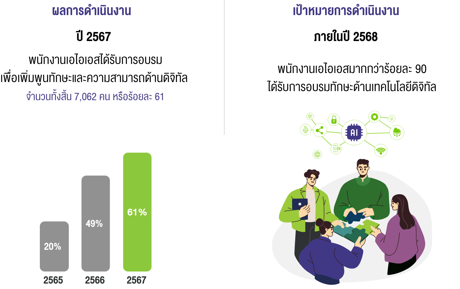หมายเหตุ: ปี 2567 มีบูรณาการข้อมูลบริษัทเอไอเอสและ TTTBB เนื่องจากการซื้อกิจการ TTTBB จึงส่งผลให้ข้อมูลผลการดำเนินงานมีการเปลี่ยนแปลงไปจากปีก่อนหน้า