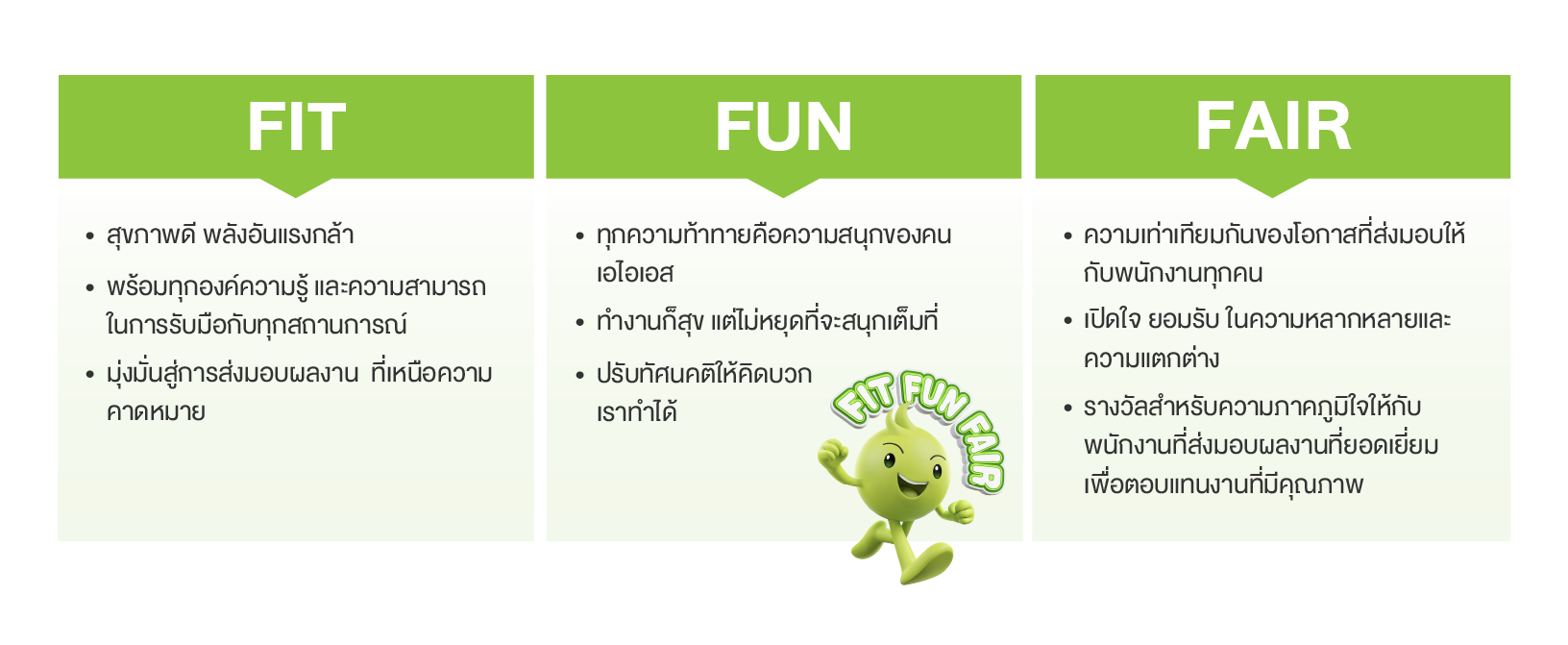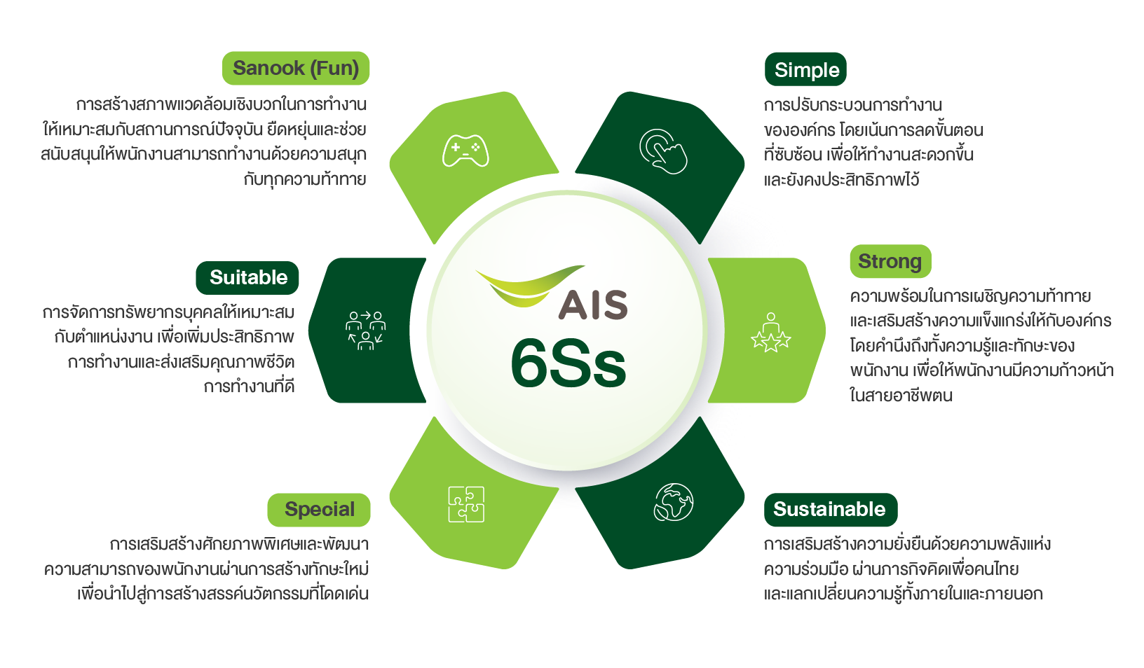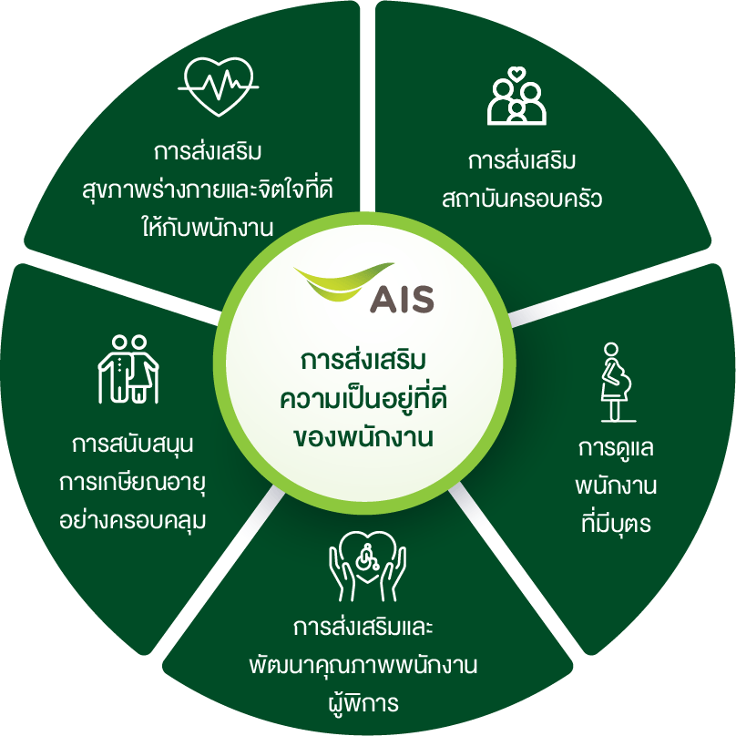 เอไอเอสจัดทำ Employee Engagement Survey ครอบคลุม 4 ด้านหลัก ได้แก่ Basic Need, Individual Contribution, Teamwork และ Learning & Growth และได้คะแนนเฉลี่ย 4.10 จาก 5 ซึ่งถูกนำไปใช้พัฒนาสภาพแวดล้อมและสวัสดิการในการทำงานให้กับพนักงานต่อไป
